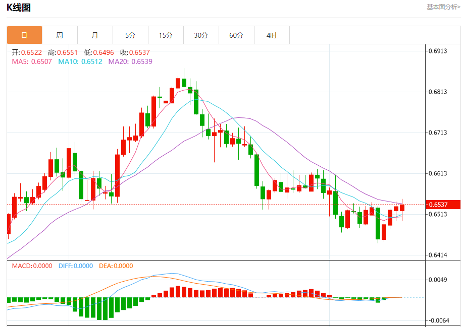 今天的预期交易范围在0.6500支撑位和0.6600阻力位之间