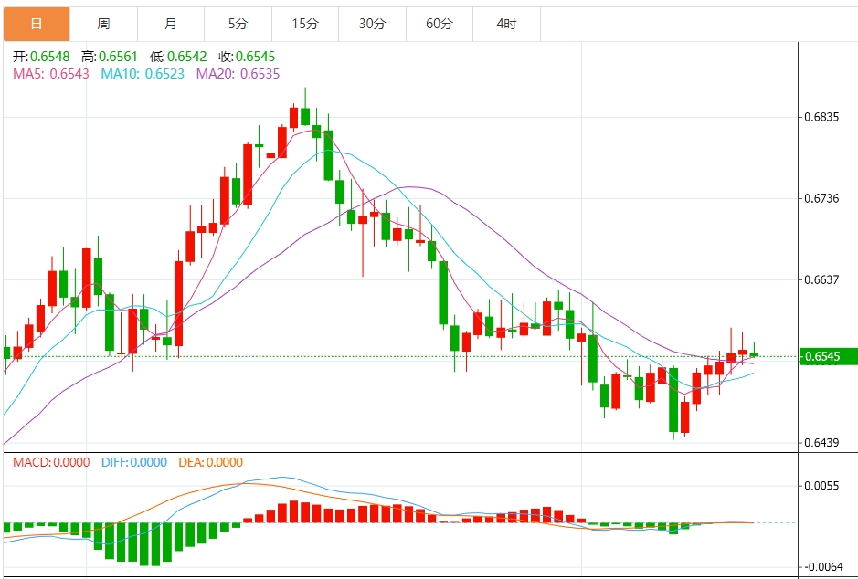 今天的预期交易区间在0.6520支撑位和0.6610阻力位之间
