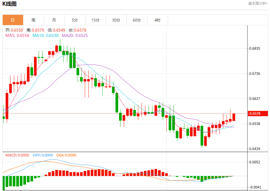 今天的预期交易范围在0.6530支撑位和0.6630阻力位之间