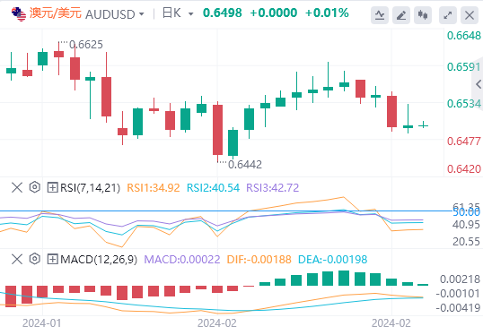 3月1日,周五亚市早盘,澳元/美元连续两个交易日收跌,维持在周线低位,处在0.6500紧下方。