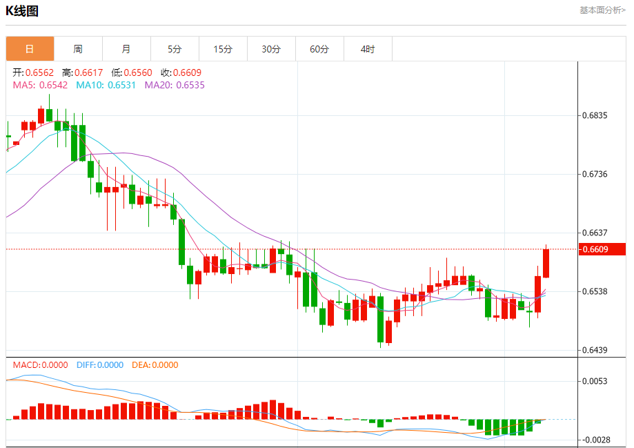 今天的预期交易范围在0.6530支撑位和0.6630阻力位之间
