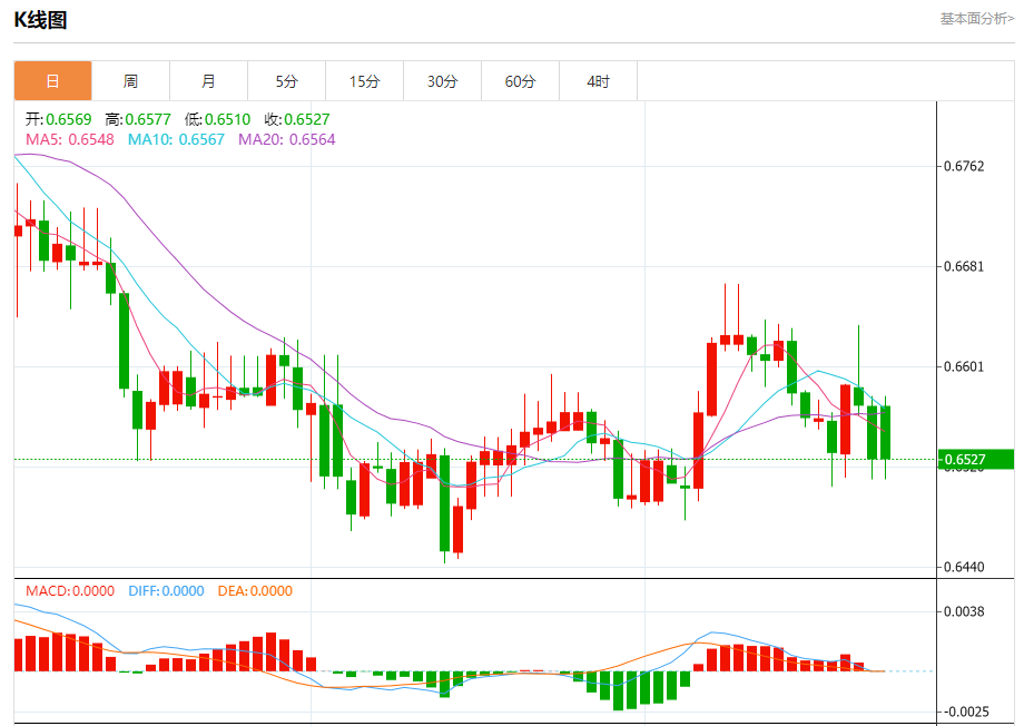 今天的预期交易范围在0.6490美元支撑位和0.6550美元阻力位之间