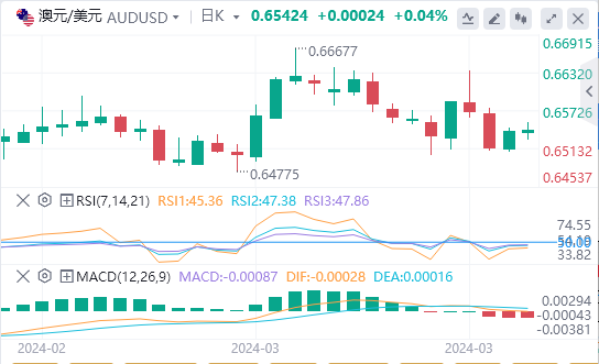 3月26日,周二欧市初盘,澳元/美元走高。美元的下跌帮助支撑了澳元/美元。在澳大利亚西太平洋银行消费者信心数据发布后,澳元面临轻微的下行压力,该数据从2月份的86.0下降1.8%至84.4,从20个月的高点回落。