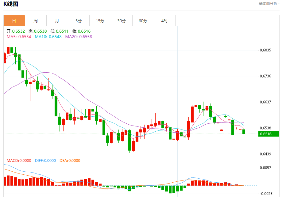 今天的预期交易范围在0.6470美元支撑位和0.6570美元阻力位之间。