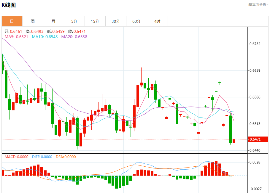 今天的预期交易范围在0.6420美元的支撑和0.6520美元的阻力之间。