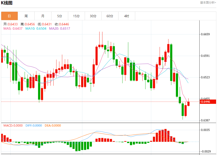今天的预期交易范围在0.6410美元支撑位和0.6510美元阻力位之间。