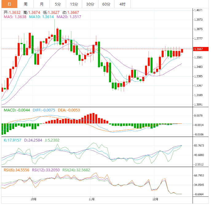 周一盘中,美元兑加元保持在1.3675附近,刷新盘中高点,同时延续了周一早盘的涨势。