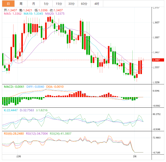 今天预期的交易区间位于1.3340支撑位和1.3500阻力位之间。