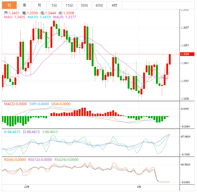 周五盘中,美元/加元上涨至月线新高1.3490附近。