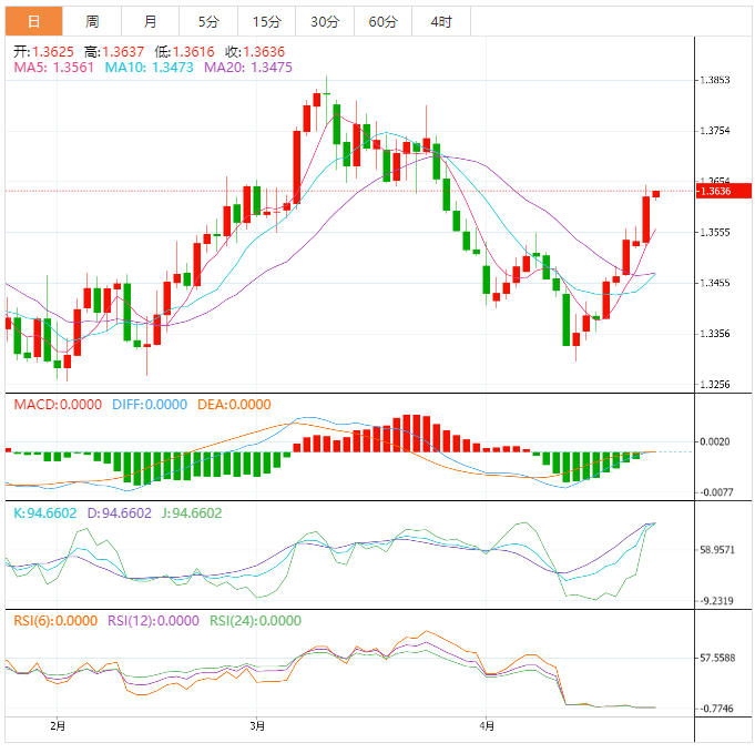 也就是说,美元兑加元的首个阻力位将是1.3650。一旦出清,美元兑加元的下一个阻力位将是1.3700,随后是3月24日的周期高点1.3804和今年迄今的高点1.3862。