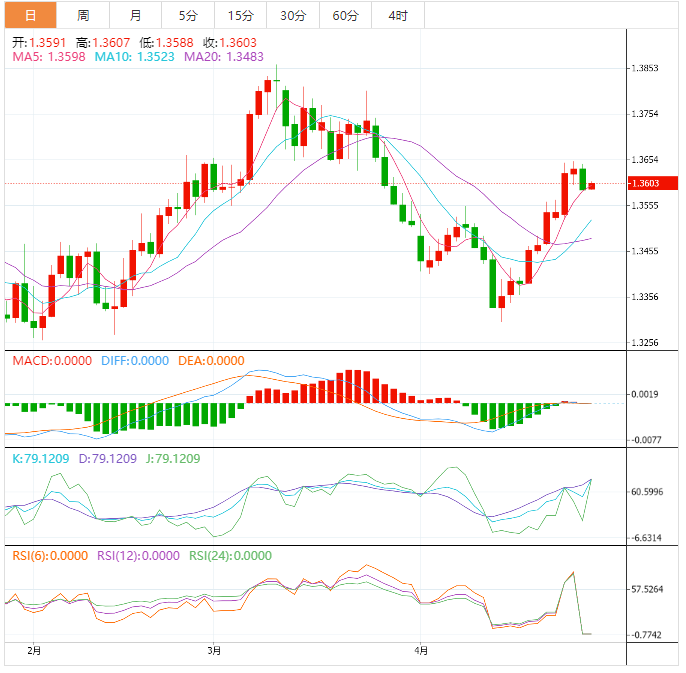 美元兑加元在1.3600附近守住了较低的基础,50日移动均线挑战了美元兑加元从上周五早间一个月高点的180度大转弯。在此过程中,该报价也追踪看涨MACD信号,同时为连续第二周上涨做准备。