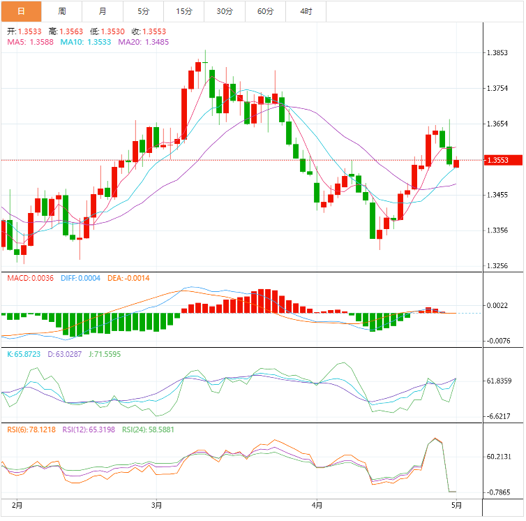 周一盘中,美元兑加元上涨至1.3553,涨幅0.16%。