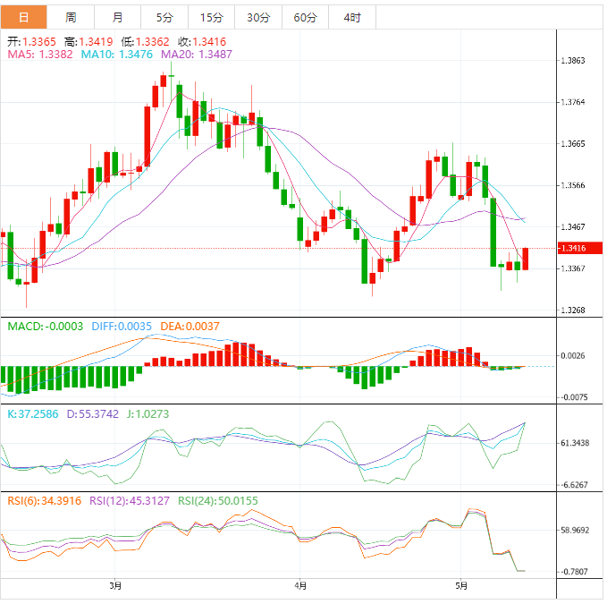 周四盘中,美元兑加元上涨至1.3417,涨幅0.38%。
