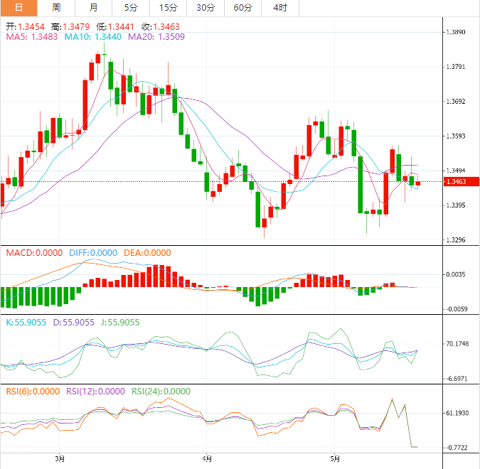周四盘中,美元兑加元上涨至1.3464,涨幅0.06%。