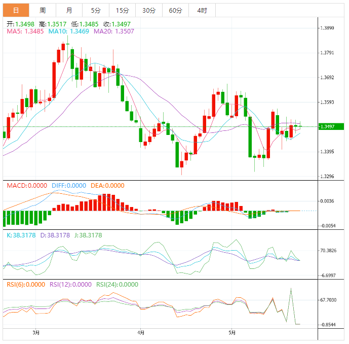 周一盘中,美元兑加元上涨至1.3499,涨幅0.01%。