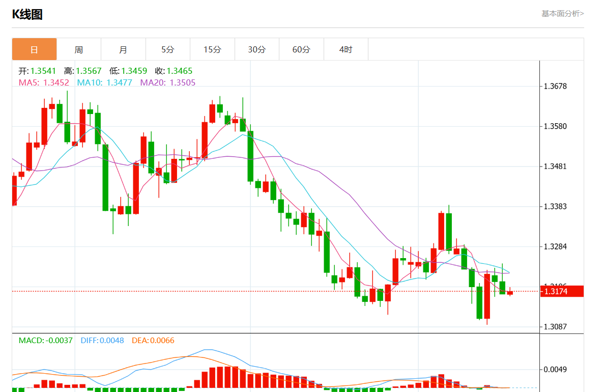 周三盘中,美元/加元最新报1.3175,日图涨0.05%