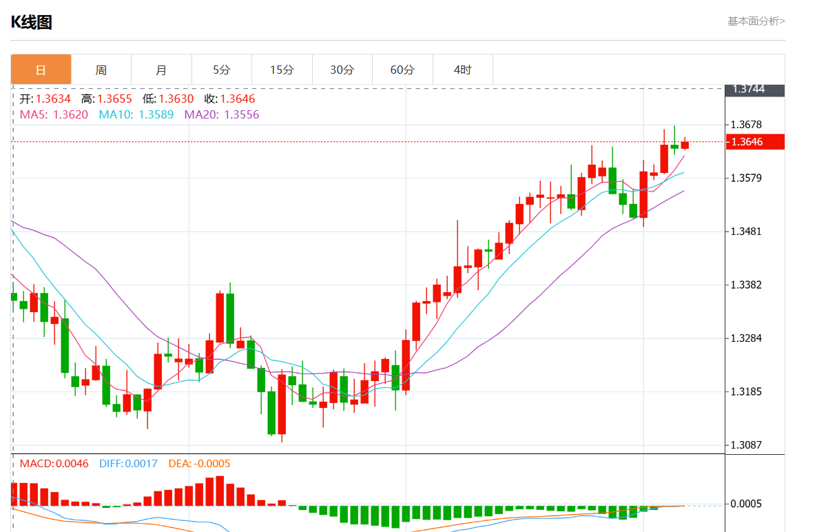 周四盘中,美元/加元报1.3644,涨幅0.07%。