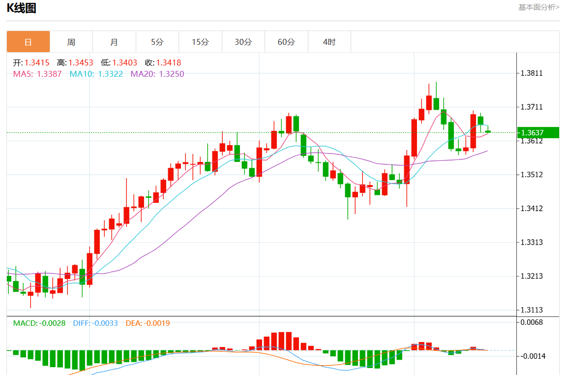 周一盘中,美元/加元报1.3639,跌幅0.15%。