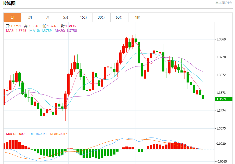 技术点评:跌破1.3565,为空头信号,向下的目标将会是1.3520。