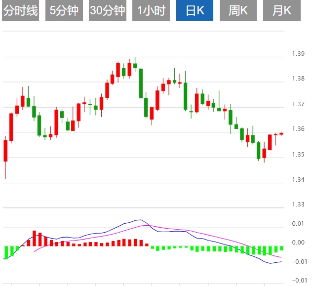 周四亚盘,美元/加元盘中走强。该货币对的反弹受到美元(USD)需求复苏和油价下跌的支撑。截至发稿时,美元兑加元报1.3605,当日下跌0.09%。日内将公布加拿大10月营建许可和美国上周初请失业金人数
