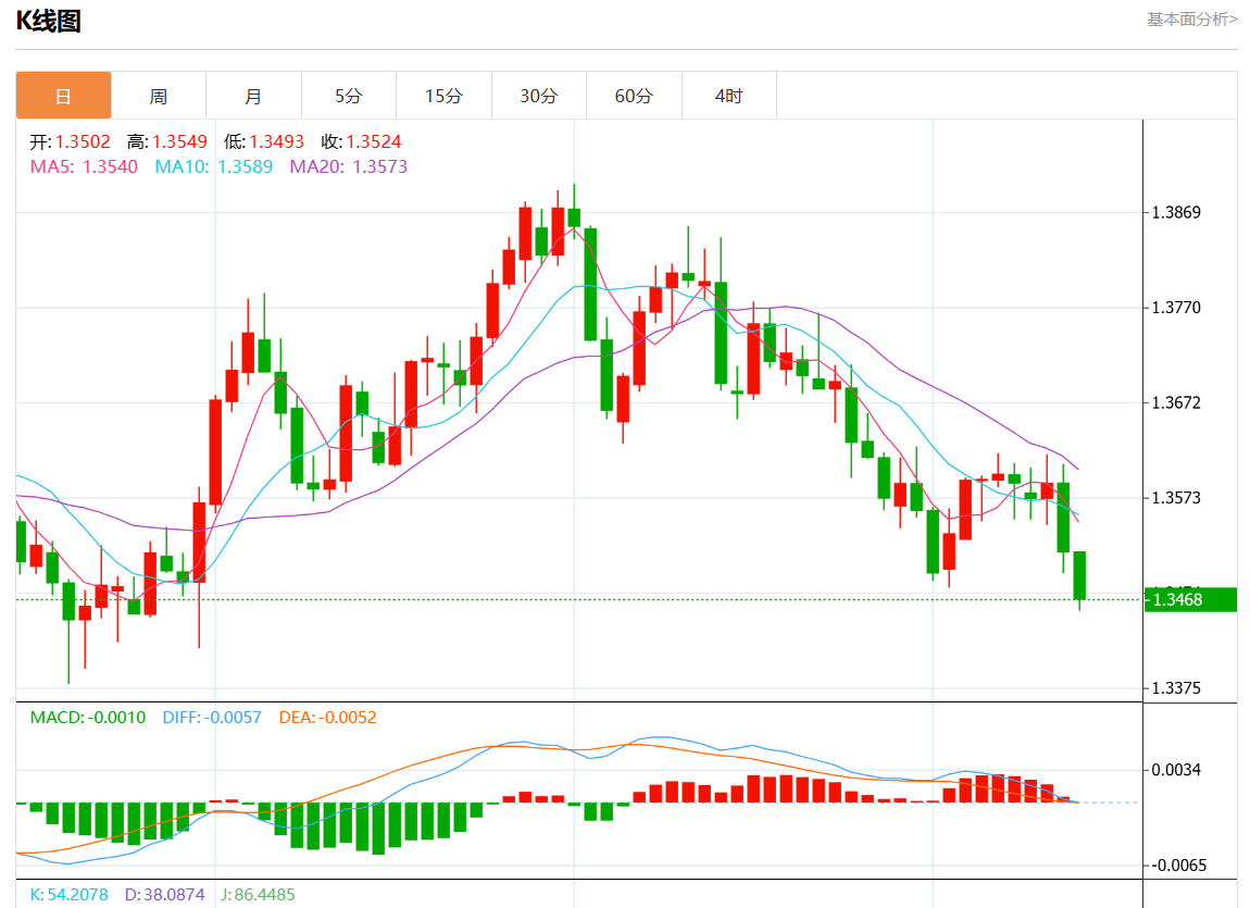 周四盘中,美元/加元报1.3471,跌幅0.34%。