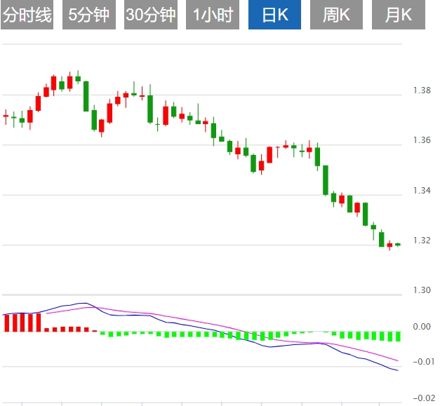 今日预期交易区间在1.3120支撑位和1.3250阻力位之间。