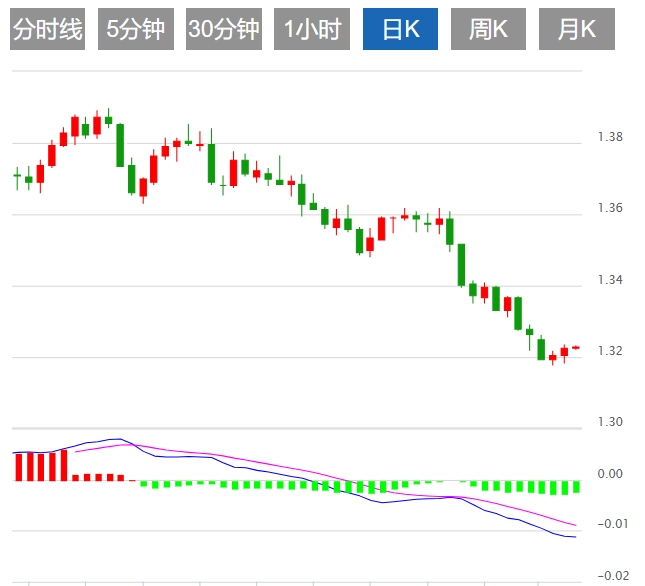 周五亚盘,美元/加元走低,现交投于1.3227附近,美元兑加元周四回升至1.3200关口上方,从近期的跌幅中回落,但仍有望连续第三周收于亏损。在过去连续九个交易周中,美元兑加元(CAD)有望连续七个交易周收盘下跌。