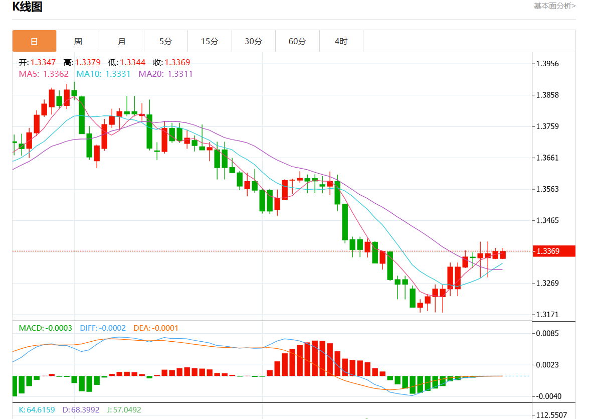 周一盘中,美元/加元报1.3366,涨幅0.03%。