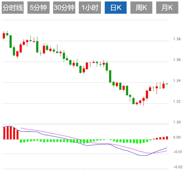 今天预期交易区间在1.3330支撑位和1.3460阻力位之间。