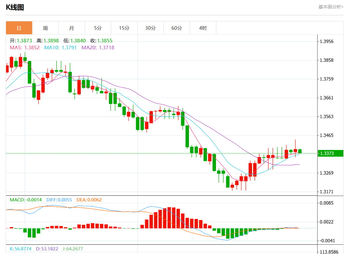周五盘中,美元/加元报1.3375,跌幅0.13%。