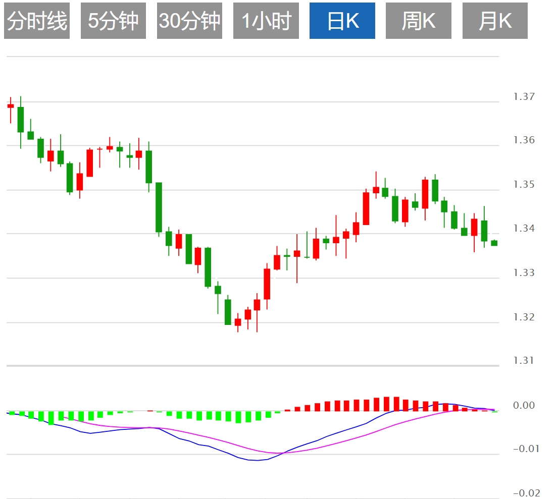 技术上,美元/加元在两天内第四次跌破1.3400关口,因为美元兑加元在市场情绪上动荡不安。在周三美联储的推动下,该货币对周四早盘回升至1.3460,触及近期低点1.3360。