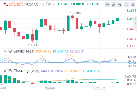 2月28日,周三欧市盘前,美元/加元连续第四天走高,并上涨至近两周高点 1.3545 附近。尽管 原油价格看涨可能会阻止美元/加元的进一步上涨,但美元需求的小幅回升促成美元/加元走高。