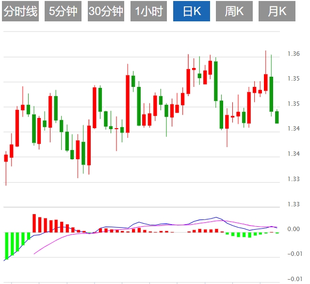 技术上,美联储结束后,加元兑美元上涨了约三分之二,美元/加元被迫跌破1.3500关口。近期技术底线价格在上周低价1.3460附近。