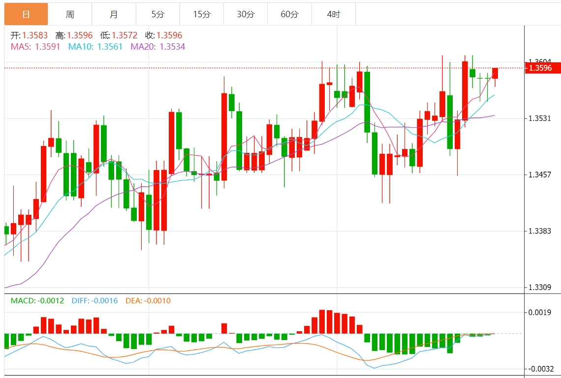 今天的预期交易区间在 1.3540 美元支撑位和 1.3660 美元阻力位之间。