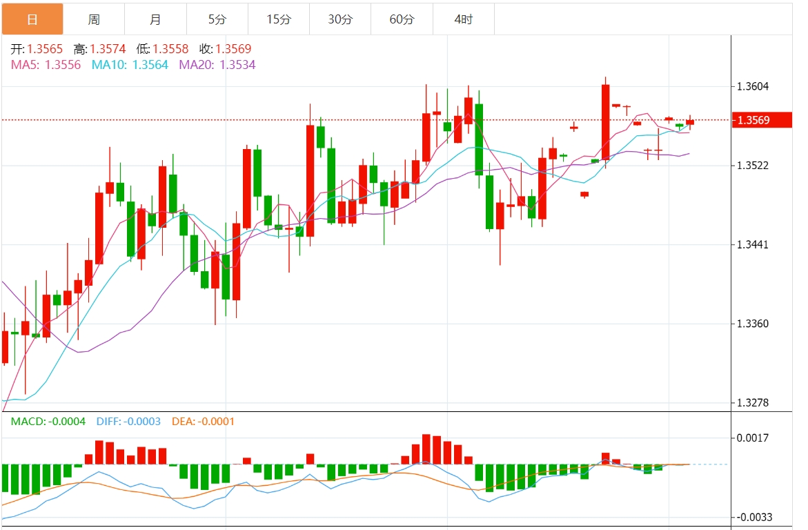 周三亚盘,美元/加元似乎连续第二个交易日走势,盘中小幅下跌至1.3560附近。原油价格的强势为加元(CAD)提供了支撑,从而削弱了美元/加元货币对。