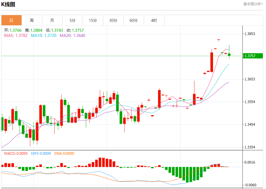今天的预期交易范围在1.3730美元支撑位和1.3870美元阻力位之间。