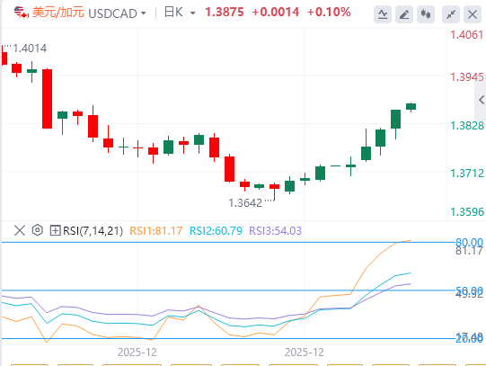 1月8日,美元/加元连续第五个交易日上涨,周四欧洲时段交易约1.3870。日线图的技术分析显示,在上升通道形态上方有突破潜力。14天相对强弱指数(RSI)在60.8(多头)处上涨,强化了积极势头。