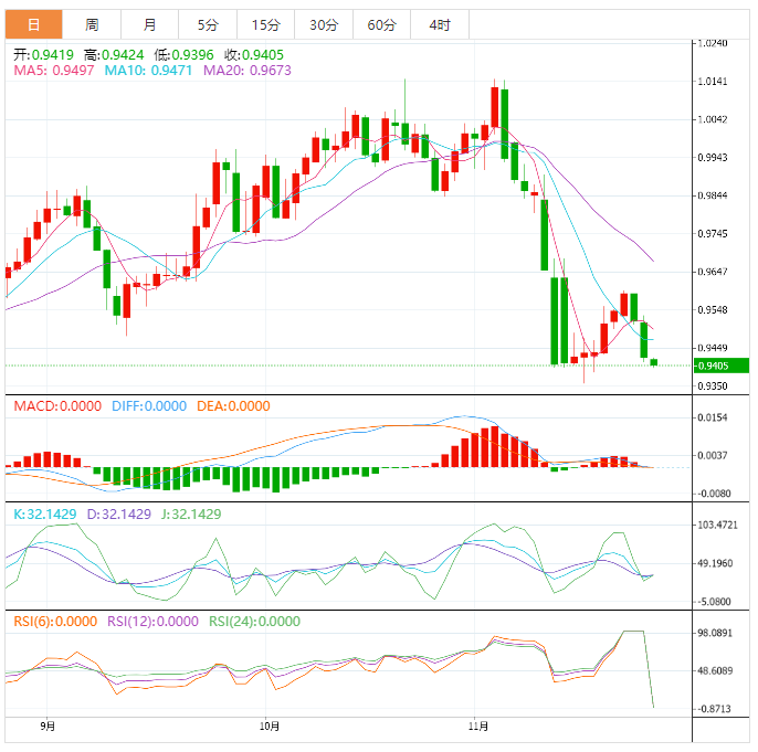 在连续两个超级看跌的交易日之后,美元兑瑞郎在周四亚洲市场早盘徘徊在0.9423附近。在过去两个交易日中,熊市终结了投资者风险偏好飙升带动的连续6天的反弹。美国联邦公开市场委员会(FOMC)会议纪要中不那么强硬的暗示引发了美元的抛售。