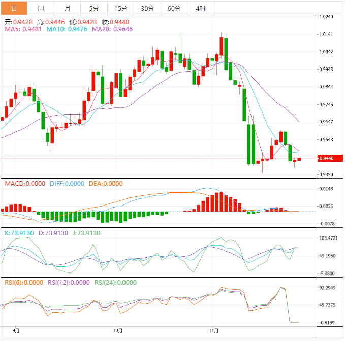 瑞郎方面,投资者正在等待周五公布的第三季度就业数据。经济数据为5331万,高于之前发布的5316万。乐观的就业数据将支持瑞士央行(SNB)坚持其扩张性政策方针。