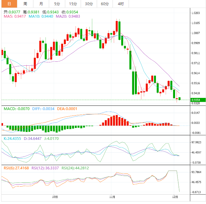 今天的预期交易区间在支撑位0.9270和阻力位0.9400之间。