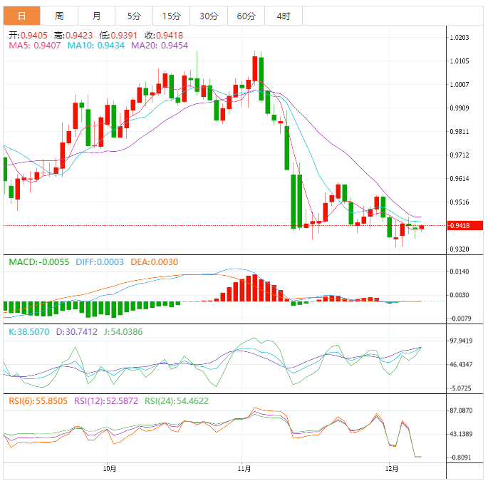 瑞郎方面,投资者正将注意力转向定于下周公布的瑞士央行(SNB)利率决定。瑞士央行主席Thomas J. Jordan预计将继续实施宽松政策,因为通胀压力略高于预期水平。本周,瑞士失业率降至2.1%,低于预期,低于此前公布的2.0%。