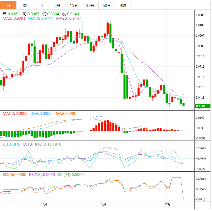 周五亚洲市场早盘,美元兑瑞郎未能延续其在0.9380上方的反弹,并正在向下逼近0.9350的缓冲位置。风险偏好主题导致避险吸引力大幅下降,拖累了美元指数(DXY)。随着美联储(Fed)将于下周宣布2022年的最后一项货币政策,外汇市场的波动正在加速。