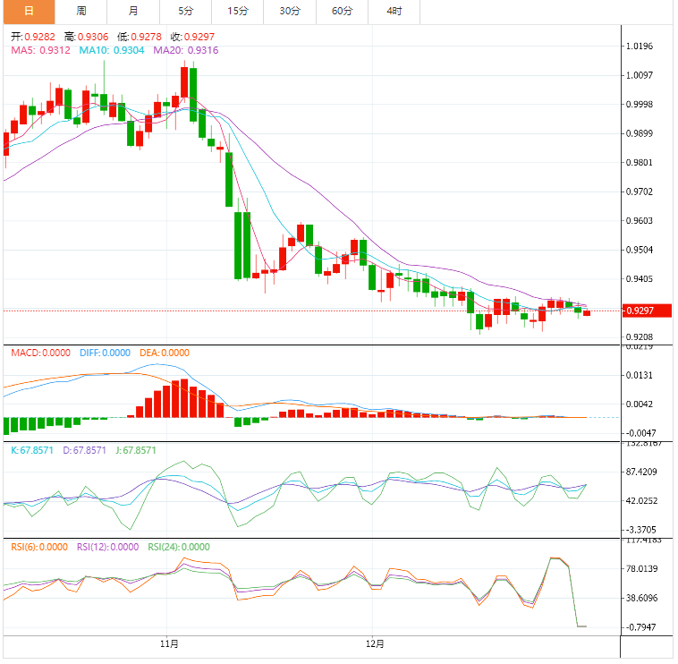 两周的看涨通道,目前在0.9235和0.9350之间,表明美元/瑞郎将出现短期反弹,尽管报价多次未能突破21日移动均线障碍,截至发稿时接近0.9340。