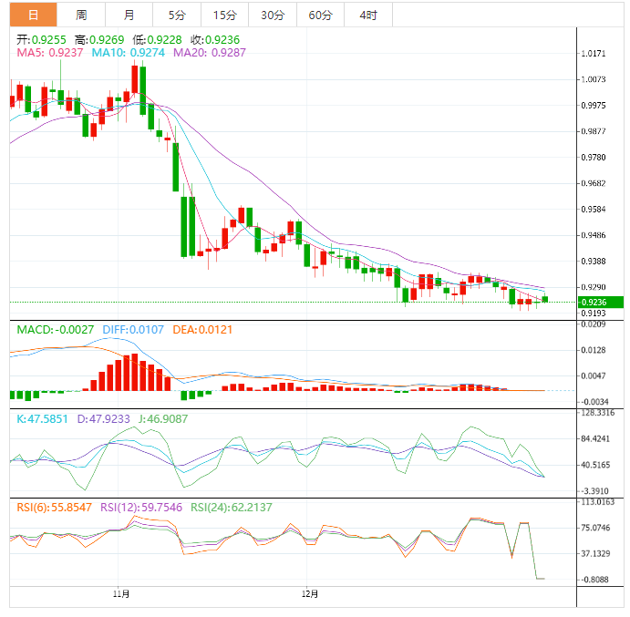 周二盘中,瑞士法郎反弹至0.9200附近,在2023年新年前夕,北美市场见证了流动性较弱的情况。因此,美国和瑞士经济数据的缺乏让交易员们受制于市场情绪和技术面。目前,美元/瑞郎的交易价格为0.9236。