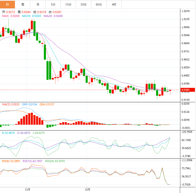 今天预期的交易区间在0.9150支撑位和0.9290阻力位之间。