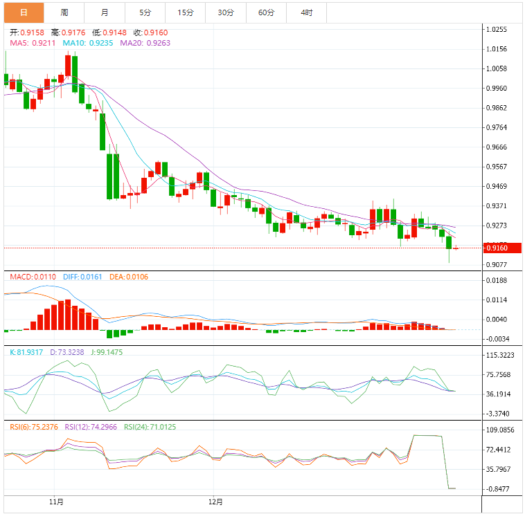 今天预期的交易区间位于0.9080支撑位和0.9215阻力位之间。