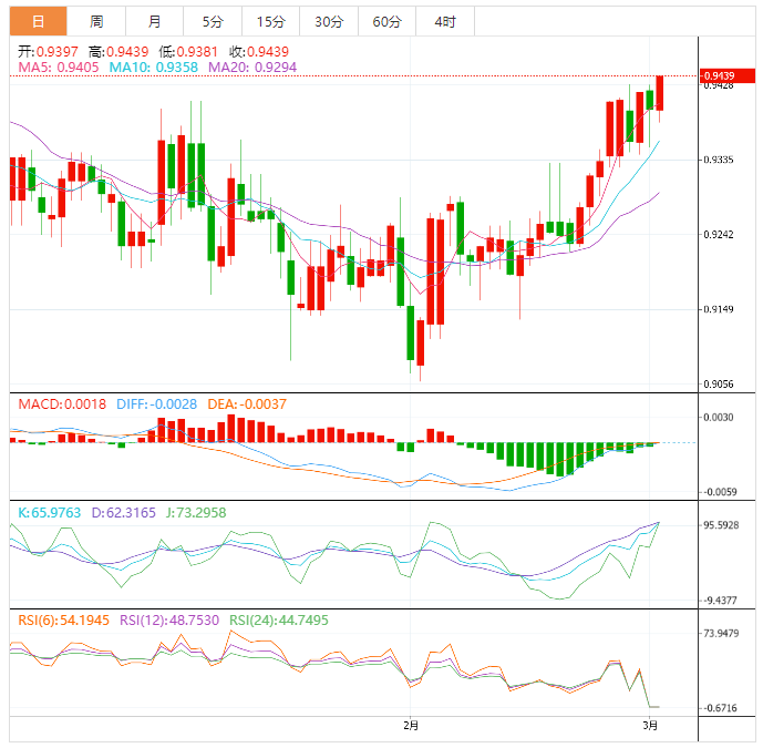 ÖÜËÄÅÌÖУ¬ÃÀÔª¶ÒÈðÀÉÉÏÕÇÖÁ0.9441£¬ÕÇ·ù0.45%¡£