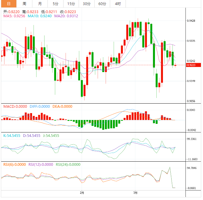 今天预期的交易区间在0.9130支撑位和0.9280阻力位之间。