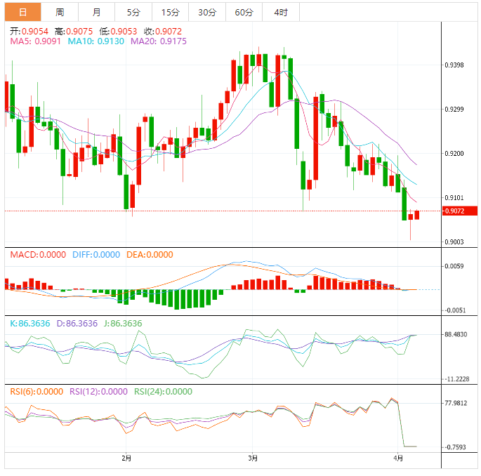 周四亚洲时段,美元兑瑞郎回落至0.9060,从前一天的22个月低点反弹失败。在此过程中,瑞士法郎对在重要就业数据发布之前欢呼美元的普遍疲软。