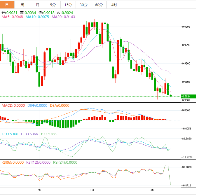 周三亚洲交易时段,美元兑瑞郎扩大了下行空间,跌破0.9030。由于美联储政策制定者预计今年美国消费者价格指数(CPI)将大幅走软,瑞士法郎资产的下行空间已经扩大。